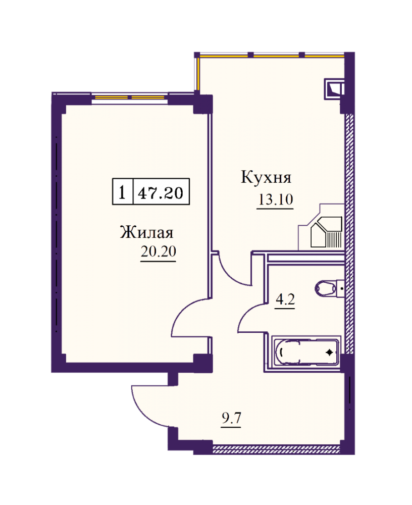 • Площадь: 47,20/20/13