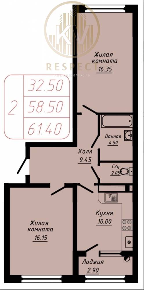 Продается 2-комнатная квартира в новостройке.