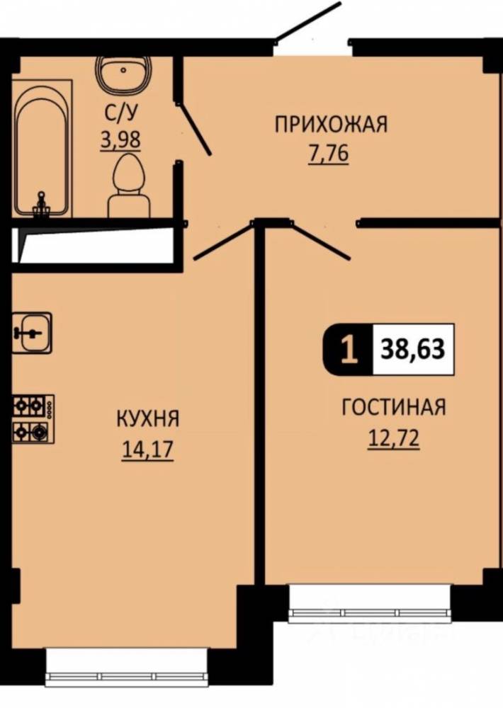 Продается 1-комнатная квартира в новостройке.