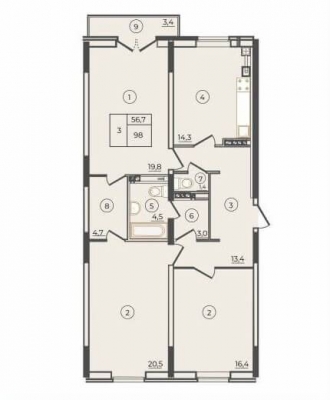Продается 3-комнатная квартира в новостройке.