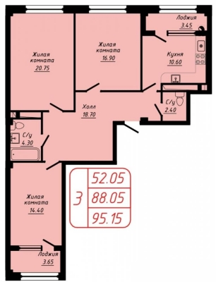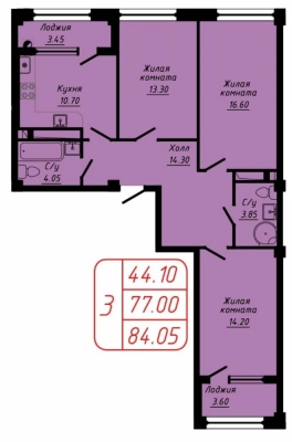 Просторная квартира с двумя балконами и лоджией, с просторной кухней-гостиной.