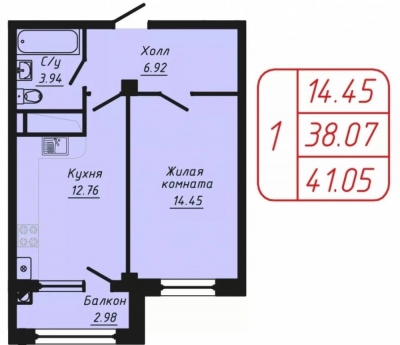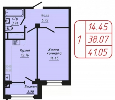 Продается 1-комнатная квартира в новостройке.