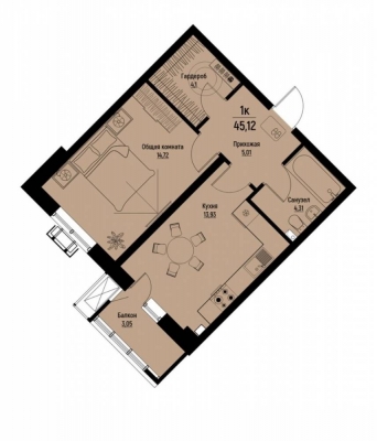 Продается 1 комнатная квартира. Во второй курортной зоне.